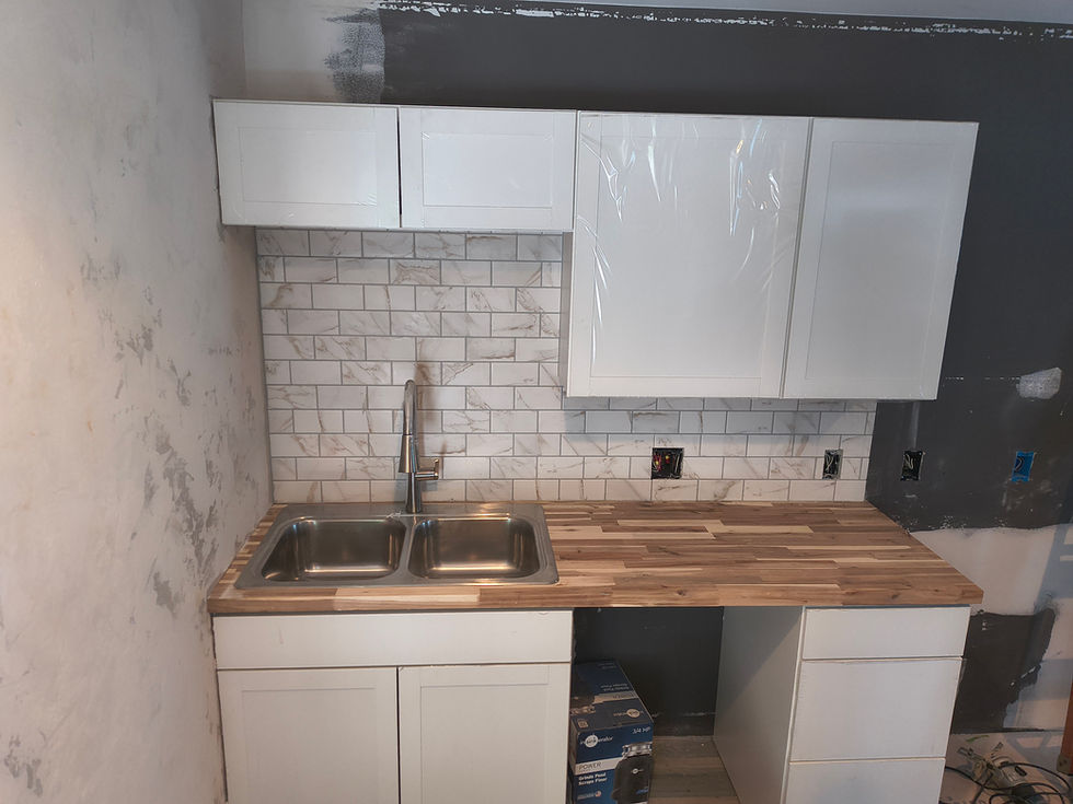 This project transformed what was once a completely open space into a fully functional living area. We designed and built a new bathroom complete with a shower, toilet, and washer/dryer hookup, adding convenience and value to the home. Alongside the bathroom, we installed a modern kitchen area featuring sleek cabinetry, new countertops, backsplash, stainless steel appliances, and updated flooring.